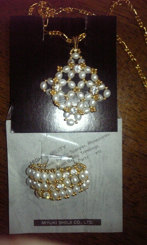 ま~指輪は前にビーズ屋さんの無料レシピを見て自分の分は作ってお気に入りで使いまくってるんだけど、ビーズをとっても喜んでくれる伯母さんにプレゼントしようと思って、おそろいでつけられるペンダントも作ってみよう
