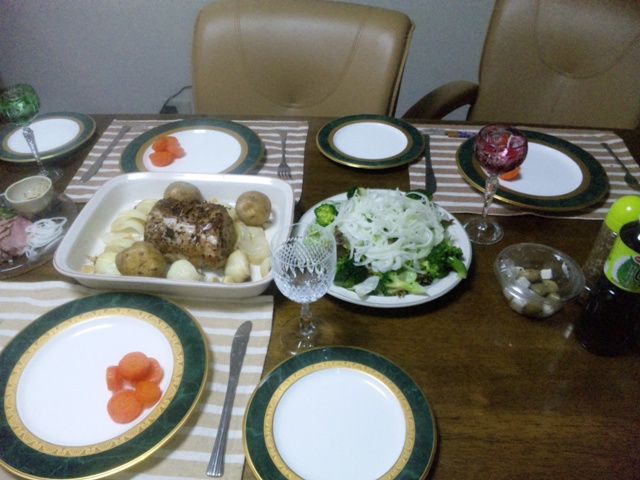 」ってできたし。見た目は豪華だし、付け合わせのじゃが芋始め玉ねぎニンニクもバッチリの焼きあがりだし・・・